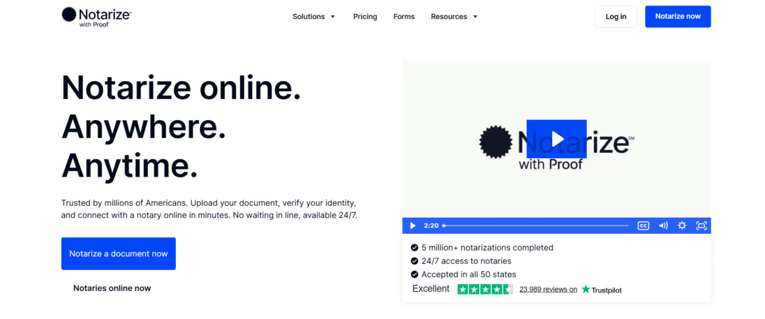 Notarize offers a digital way to handle notarization procedures online. You do everything through their Proof platform.